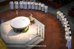 Đức Tổng Giám mục (TGM) Giuse Nguyễn Năng đã nhắn nhủ các tiến chức như thế khi ngài chủ sự Thánh lễ Truyền chức linh mục cho 19 thầy phó tế thuộc Đại Chủng viện (ĐCV) Thánh Giuse tại Vương cung Thánh đường Đức Bà Sài Gòn vào lúc 8g30 thứ Sáu ngày 07.06.2024 - cũng là ngày lễ Thánh Tâm Chúa Giêsu, cầu nguyện cho các linh mục.