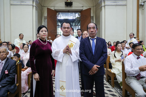 Đây là niềm hân hoan của toàn thể Tổng Giáo phận Sài Gòn vì có thêm 19 mục tử, và cũng là niềm vui lớn của gia đình các tân linh mục. Đặc biệt ông cố Gioan Vũ Gia Ly và bà cố Anna Nguyễn Hồng Trang hôm nay có 2 người con cùng trở thành linh mục ở nơi này, đó là tân chức Martinô Vũ Minh Phú và tân chức Giuse Vũ Minh Cường. Hai ông bà chia sẻ: “Ao ước của gia đình là có linh mục để dâng hiến cho Chúa. Chúa đã cho. Một phần cũng là nhờ lời cầu nguyện tha thiết của tất cả mọi người trong nhà. Gia đình rất hạnh phúc trong ngày hôm nay.”