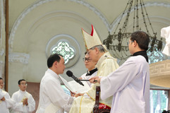 - Tiếp theo là nghi thức diễn nghĩa, gồm xức dầu lòng bàn tay và trao chén thánh cho các tân chức, cùng với vòng tay đón nhận của Đức TGM, các giám mục và các linh mục đại diện như dấu chỉ đón nhận các tân chức vào hàng cộng sự viên mới của Giám mục.