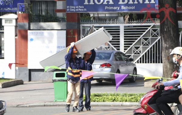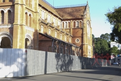 Trưa ngày 29-6-2017, Tòa Tổng Giám mục đã nhận được giấy phép thi công. Sáng ngày 30-6-2017, ông Vũ Đoàn Minh Tú - đại diện Sở giao thông vận tải Thành phố Hồ Chí Minh, Khu Quản lý Giao thông Đô thị số 1- đã lập biên bản bàn giao mặt bằng cho Tòa Tổng Giám mục. Và sáng ngày 4-7-2017, đơn vị thi công - là công ty Thép Việt Bình Dương - đã tiến hành lắp đặt hàng rào che chắn để phục vụ cho việc sửa chữa mái ngói và hai tháp nhọn của Nhà thờ.